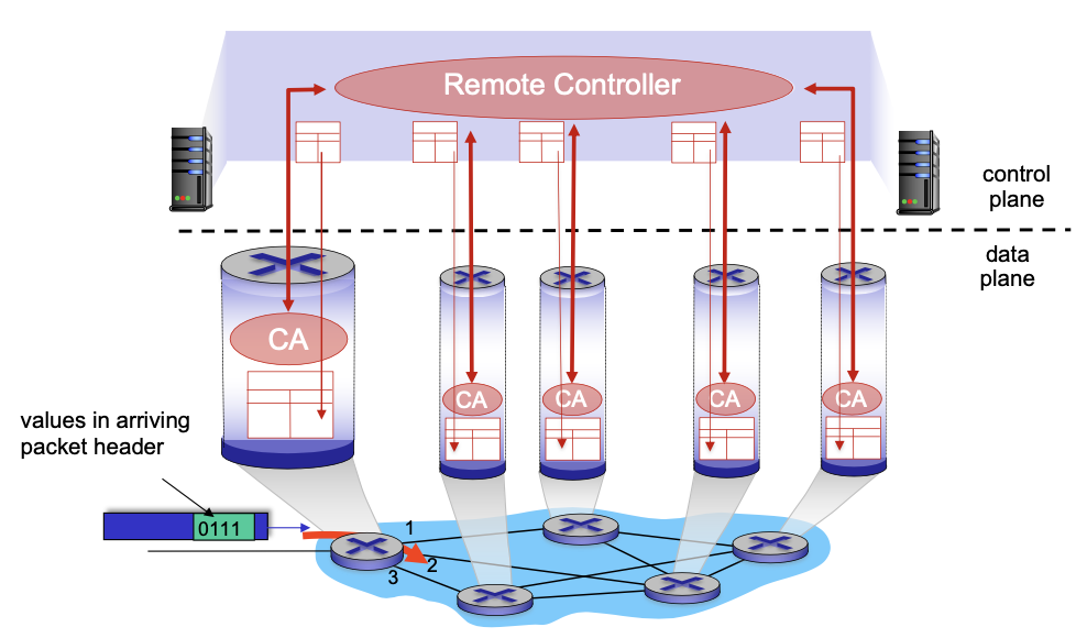 원격 컨트롤러가 라우터에 forwarding 테이블을 계산하고 설치한다.