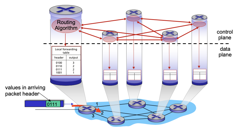 - forwarding : 데이터를 적절한 출력 링크로 이동시키는 기능